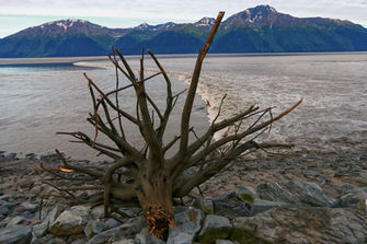 Alaska's most famous Bore Tide, occurs in a spot on the outside of Anchorage in the lower arm of the Cook Inlet, Turnagain Arm, where wave heights can reach 6-10 feet tall, move at 10-15 mph and the water temperature stays around 40 degrees Fahrenheit.